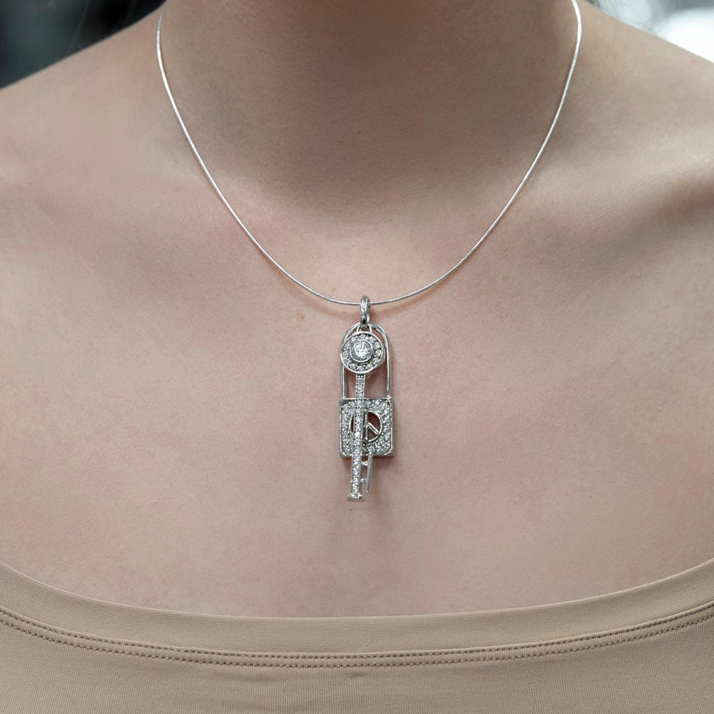 Μενταγιόν κλειδί και λουκέτο από Ασήμι 925 με Ζιργκόν.