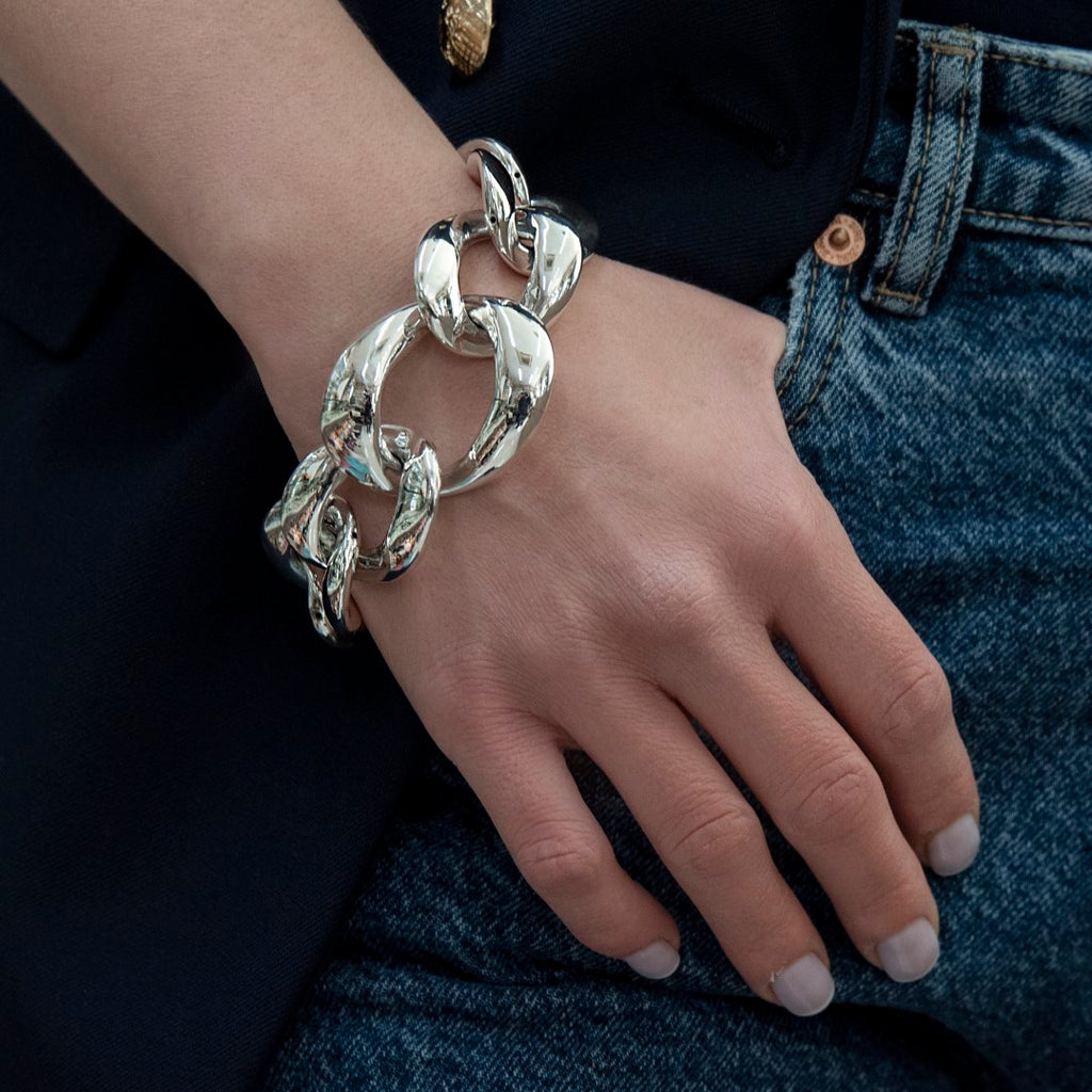 Βραχιόλι χειροποίητο από Ασήμι 925 με μεγάλους κρίκους, ιδιαίτερα εντυπωσιακό μοναδικό κόσμημα για ξεχωριστές εμφανίσεις.