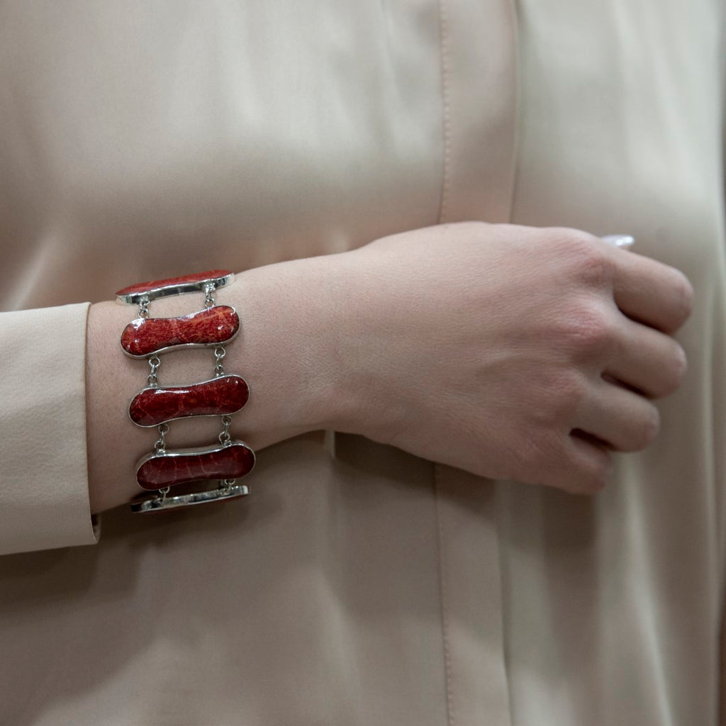 Βραχιόλι χειροποίητο από Ασήμι 925 με κοράλι.