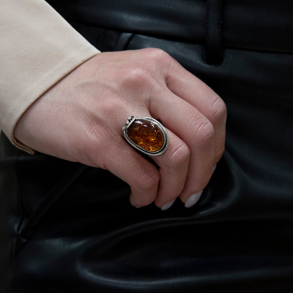 Δαχτυλίδι Χειροποίητο Από Ασήμι 925 Με Κεχριμπάρι