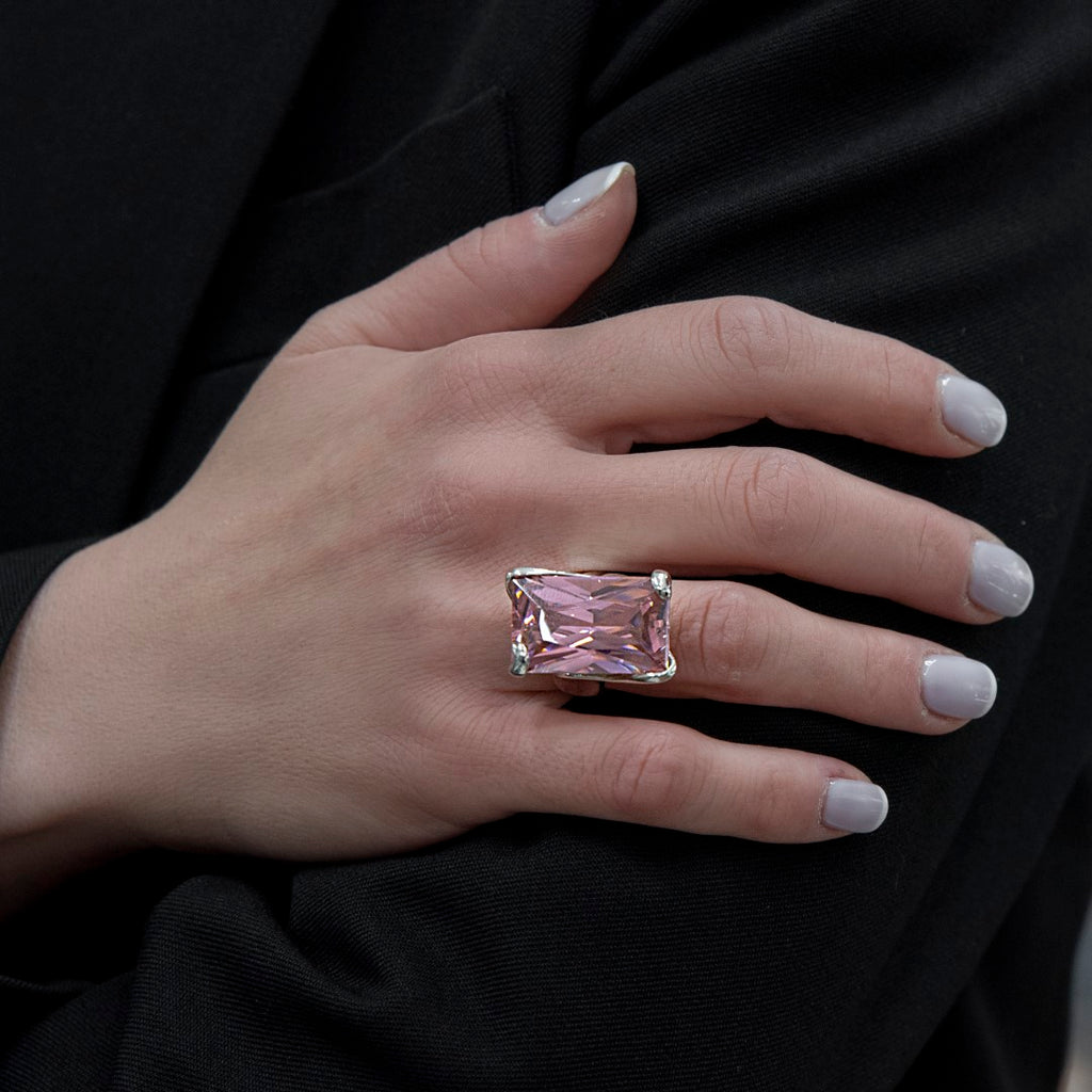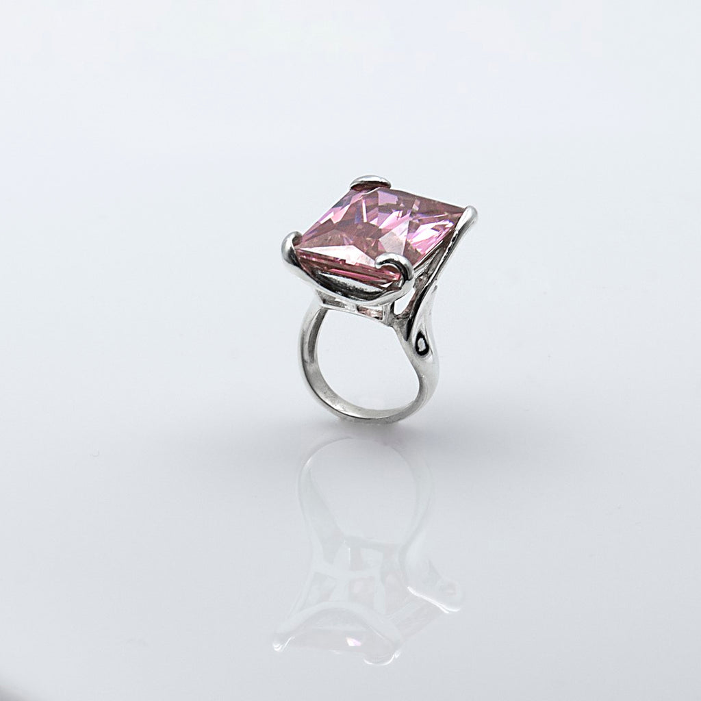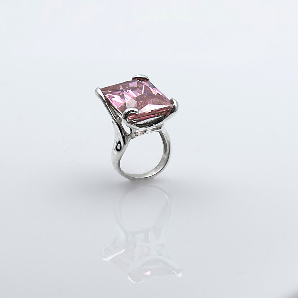 Δαχτυλίδι μονόπετρο από Ασήμι 925 με ροζ Ζιργκόν.