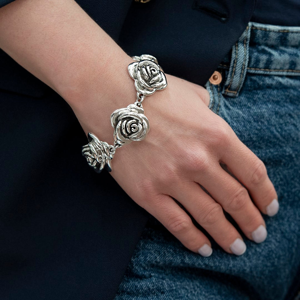 Sterling Silver Bracelet with impressive roses.